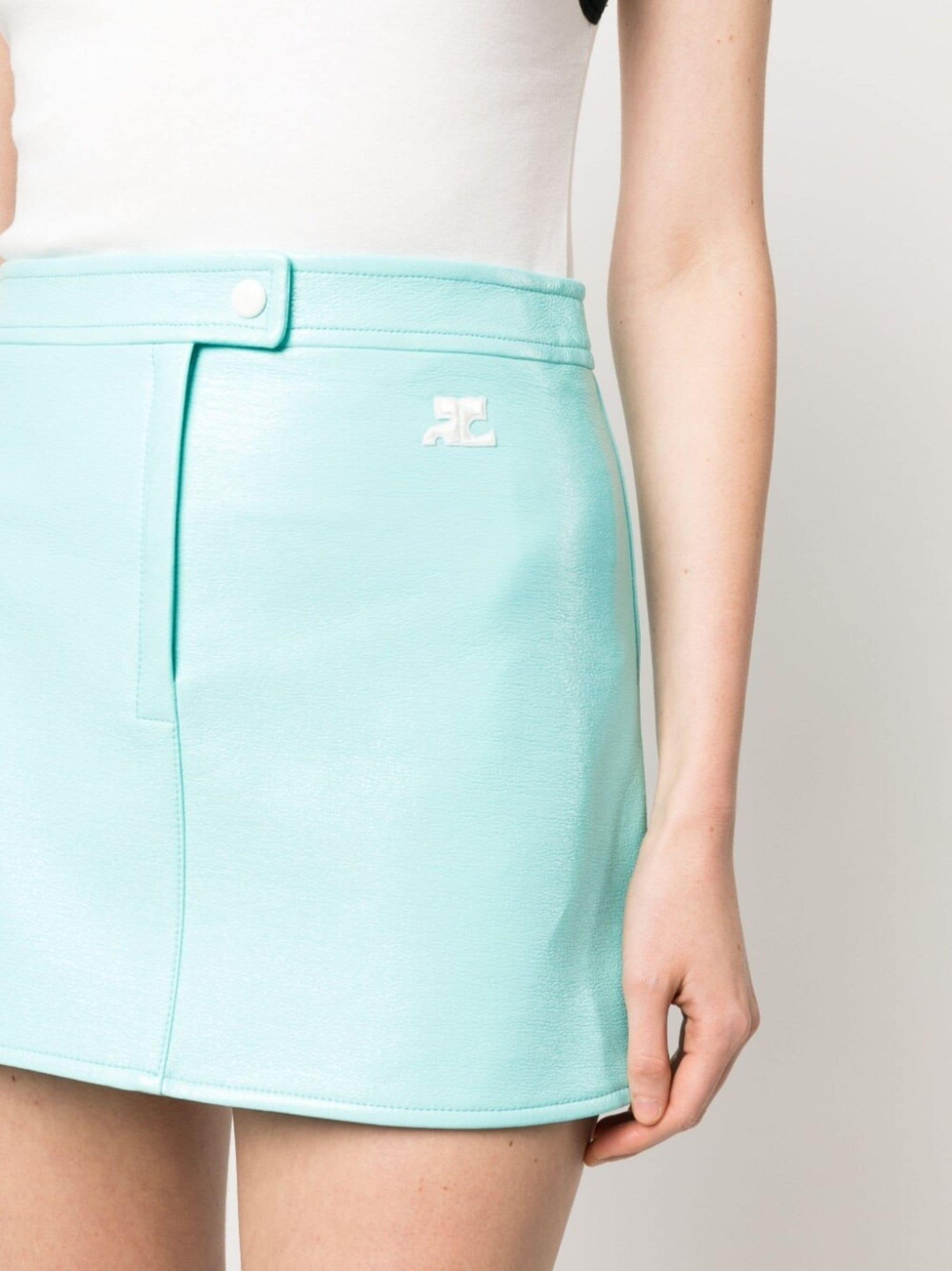 Описание: Виниловая юбка Gonna Reedition от COURRÈGES с небесно-голубым цветом из смеси хлопка, застежкой на пуговицах и молнии спереди, вышитым логотипом спереди, длиной до бедра и фасон. Состав наружная часть: хлопок 88%; полиуретан 10%; .