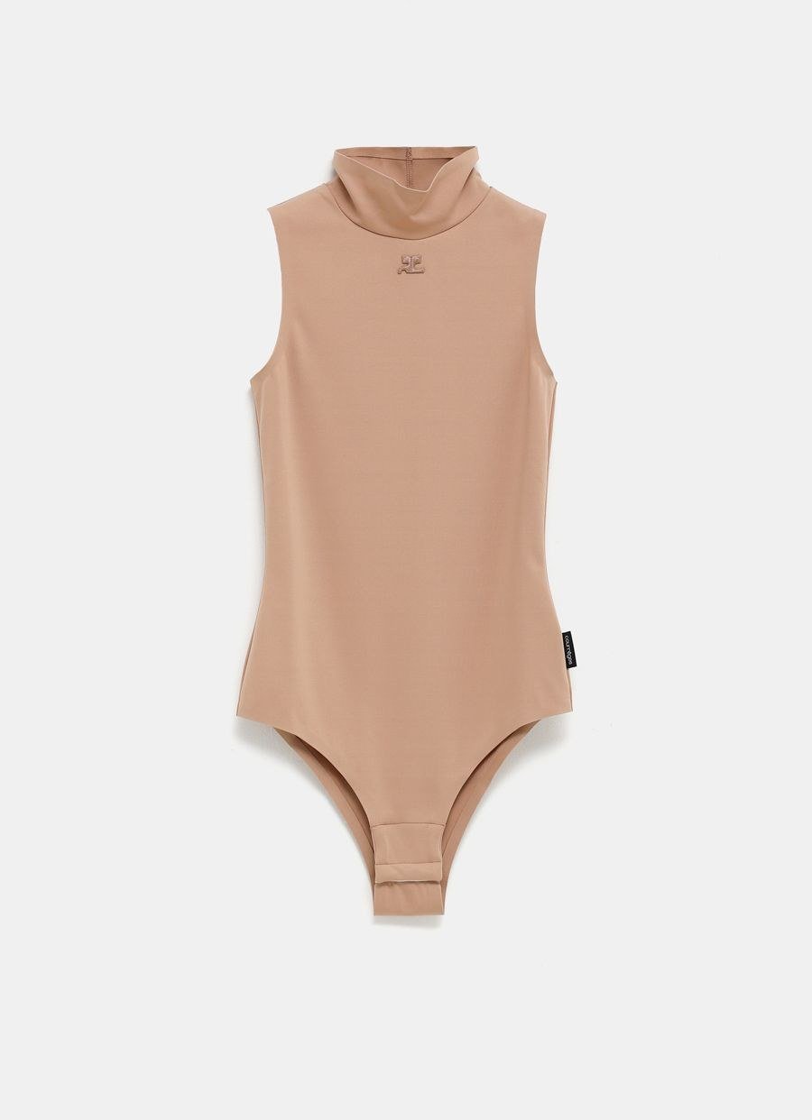 Песчаник. Эластичный материал. Нашивка с логотипом спереди. Ткань джерси. Высокий воротник. Потайная застежка спереди. Без рукавов. Обработанные края.