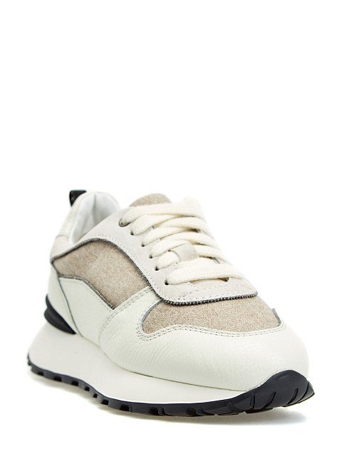Описание: Женские кроссовки Doucal's. Модель молочного цвета. Бежевые шерстяные вставки. Шнуровка. Логотип Симферополь. Мех внутри.
