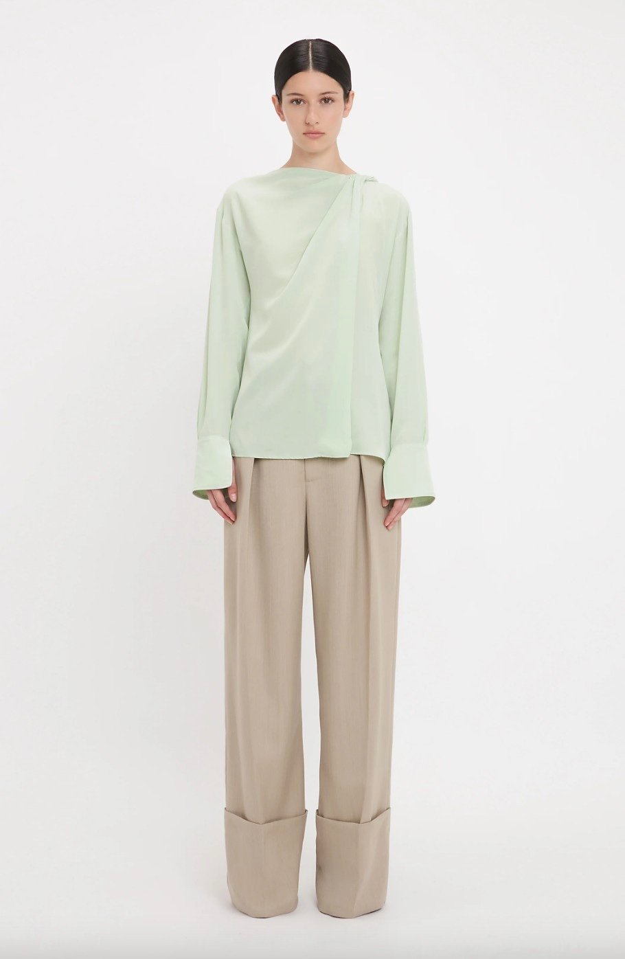 Сдержанно элегантный, Twist Detail Scarf Top характеризуется шарфом, элегантно спадающим от линии плеч. Изготовлен из 100% шелка, драпированный вырез с закрученными деталями и глубокие манжеты с застежкой на пуговицах и руле для роскошного завершения. Представленный в приглушенном оттенке нефрита, это изящный предмет для ежедневного ношения.