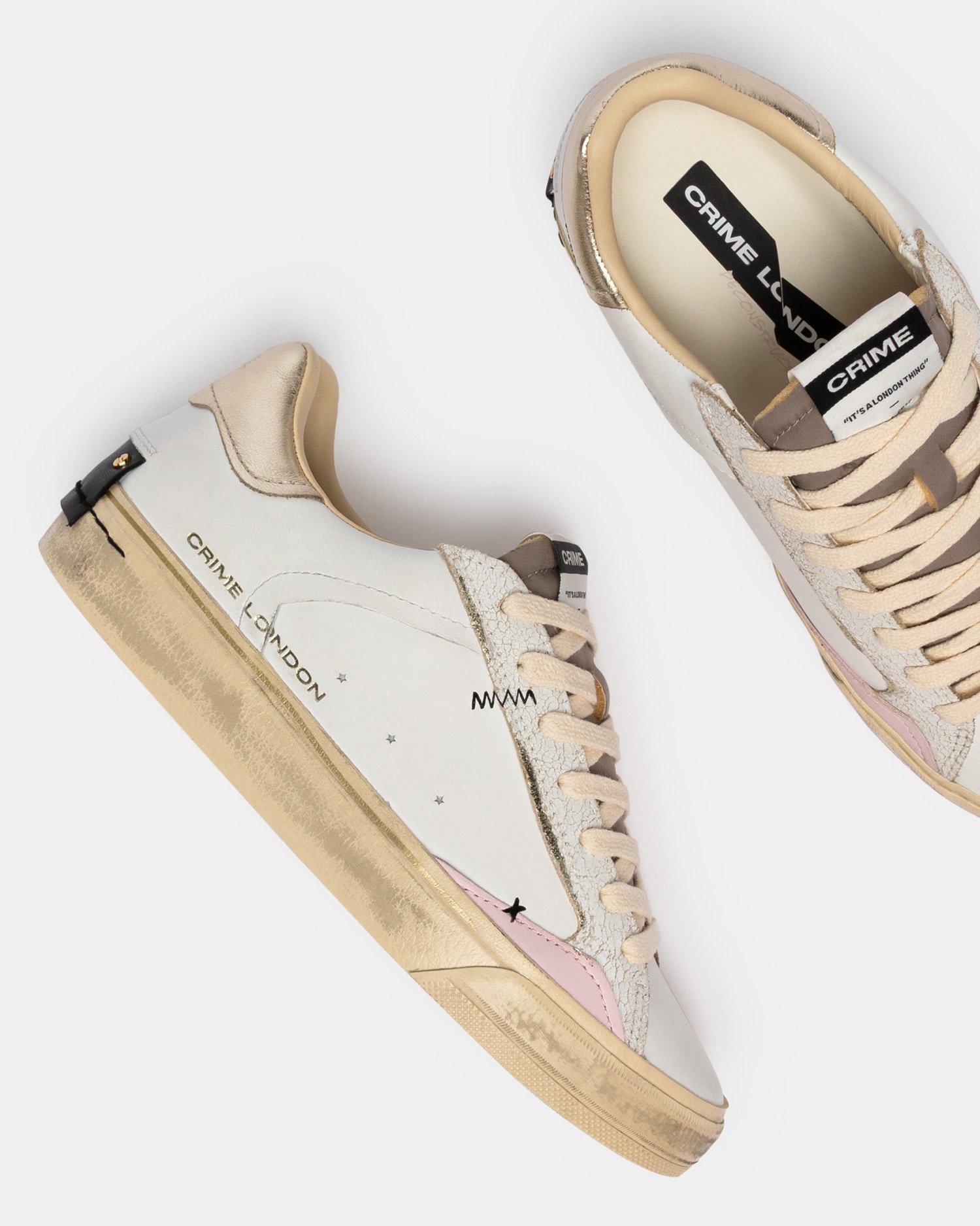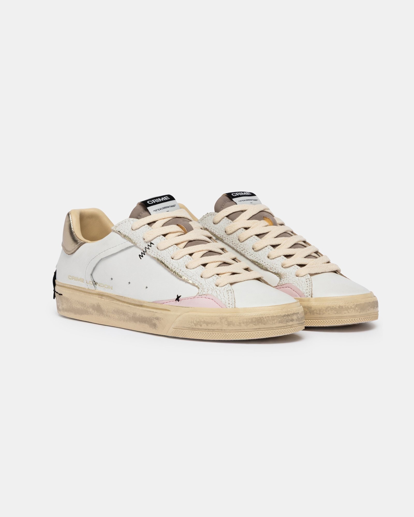 - Верх из белой кожи с пастельно-розовыми кожаными деталями
