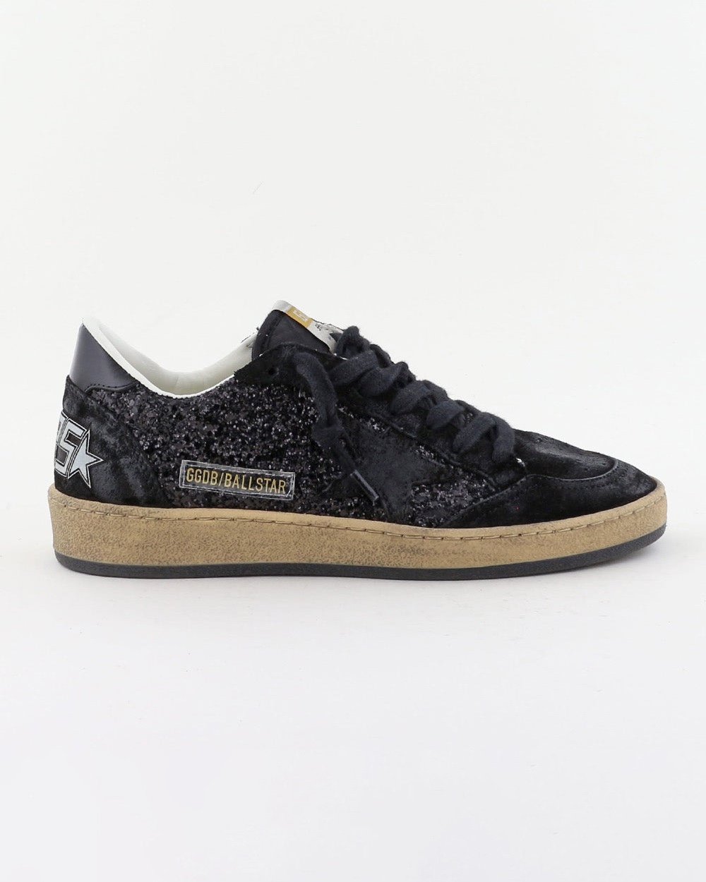 Изготовленные из блестящей ткани, замши и кожи, эти кроссовки со шнуровкой имеют бежево-черную резиновую подошву и украшены фирменной нашивкой в форме звезды и логотипом.
