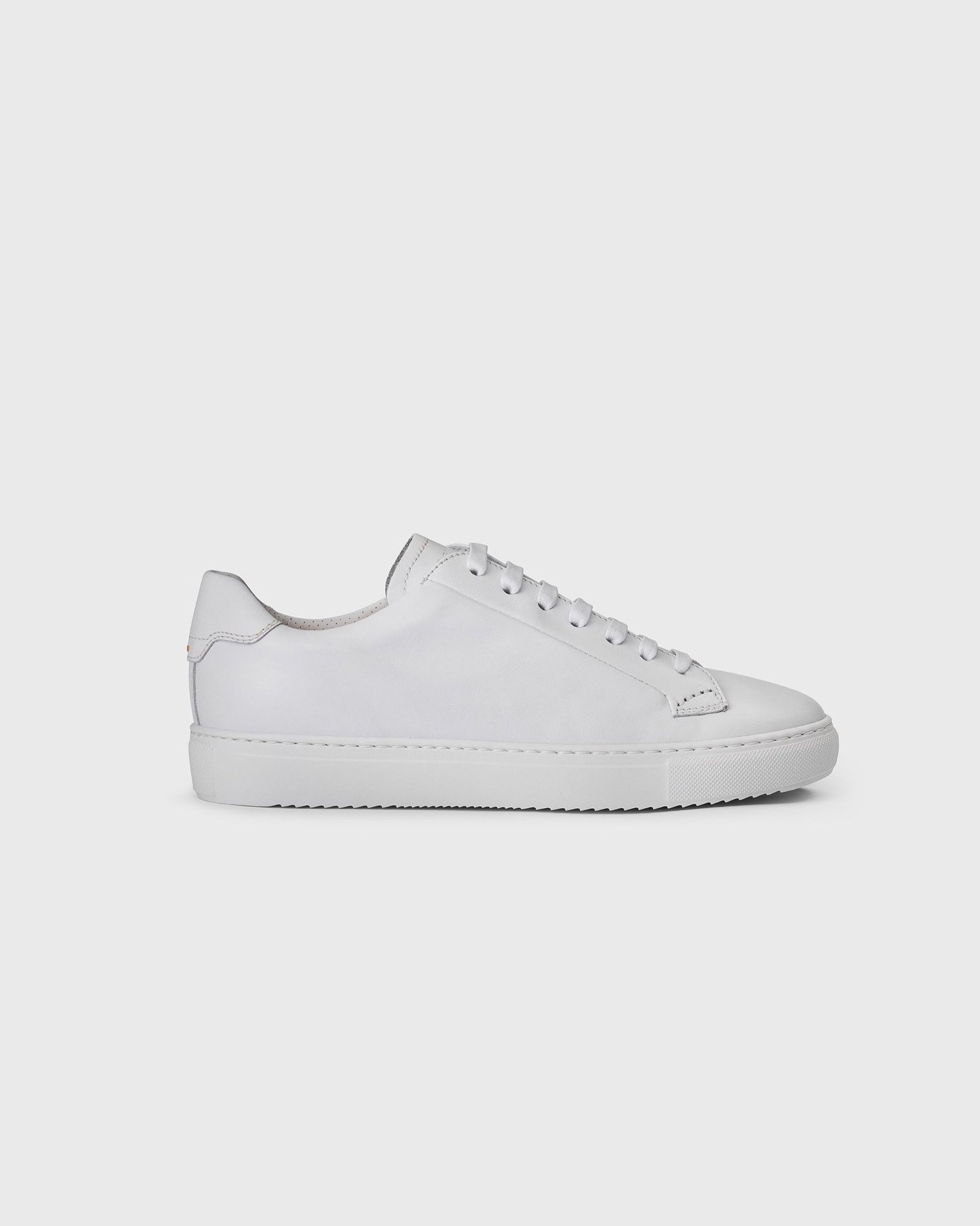 Белые кроссовки из однотонной телячьей кожи со шнурками и подошвой в тон.