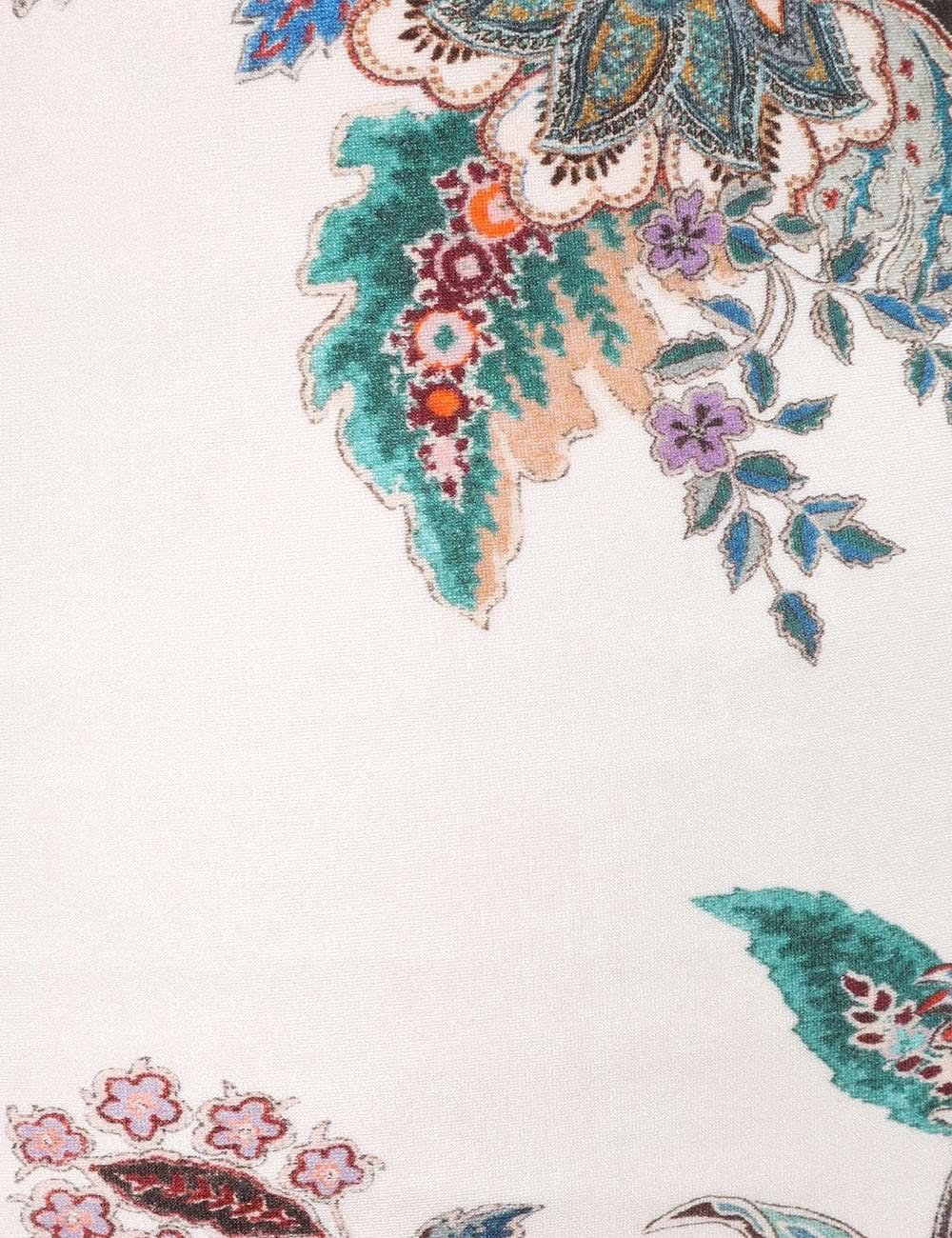 Купальник кремового цвета с пейсли-узором из летней коллекции плавок 2025. Цельный купальник из лайкры с проволочным узлом, сборками на груди, функцией «замочница» над талией и регулируемыми бретелями.