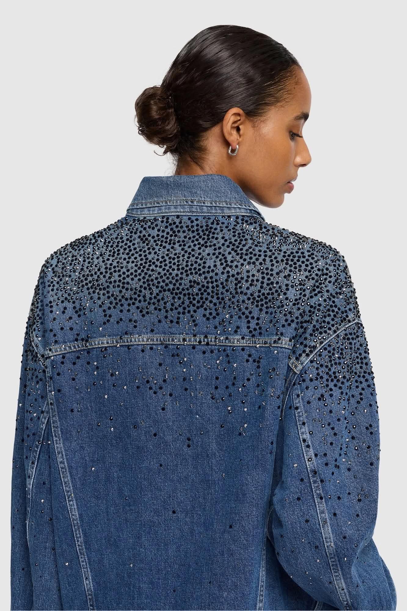 Куртка Oli Trucker с завышенным кроем и подлинными деталями является незаменимой джинсовой тканью – здесь ее подчеркивают выцветшие хрустальные украшения. Имеет застежку спереди, классический воротник, нагрудные карманы и широкие рукава. Эта темно-синяя версия прекрасно смотрится с мини-юбкой или клешами в сочетании. Состав: хлопок 99%, эластан 1%