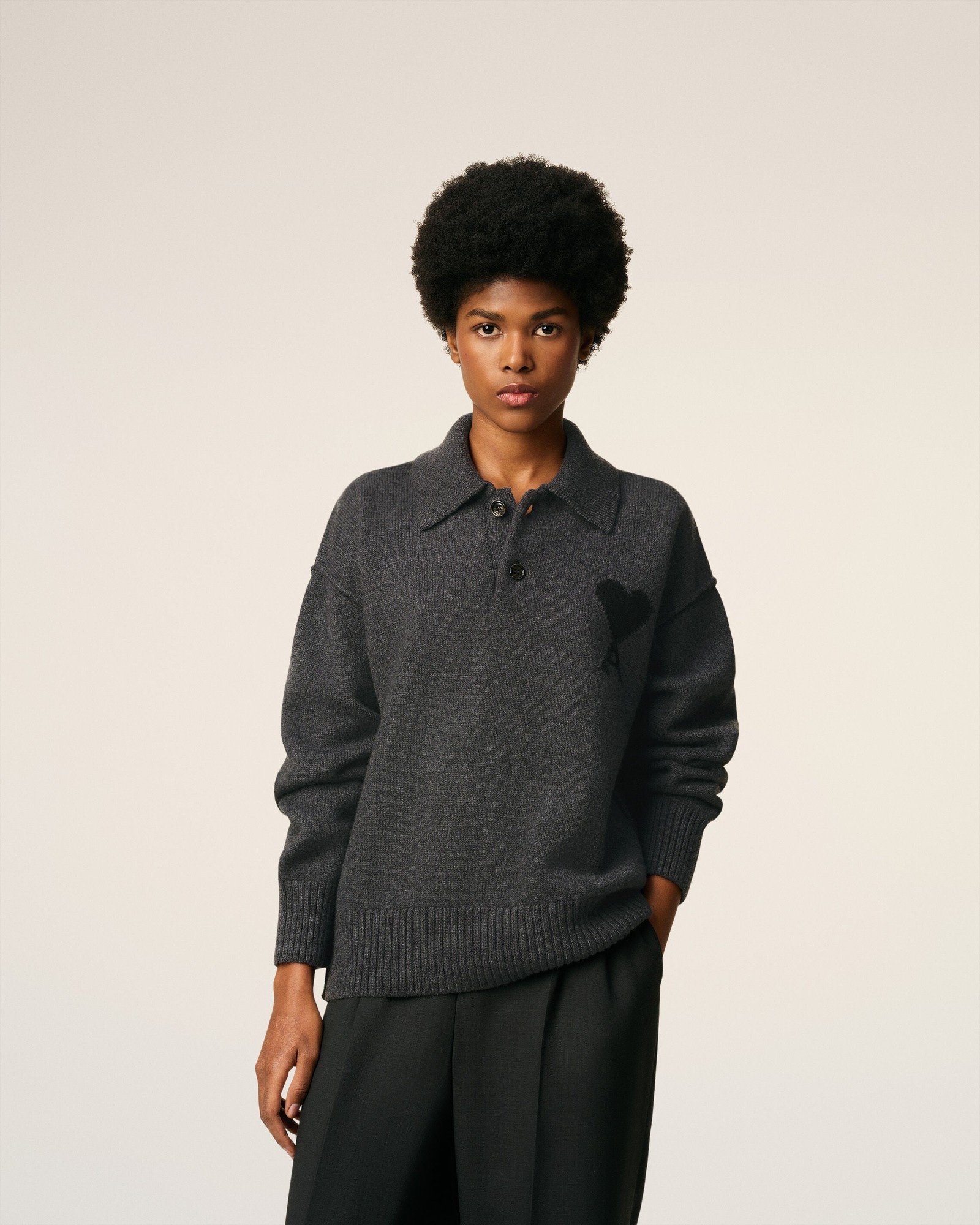 "Вязаная футболка-поло из мериносовой шерсти.