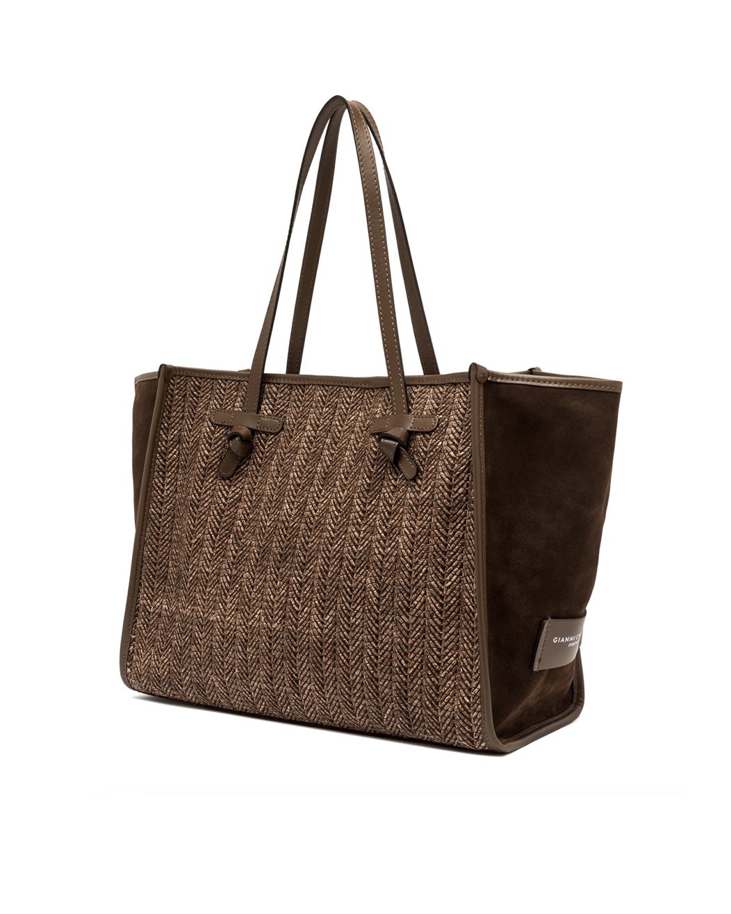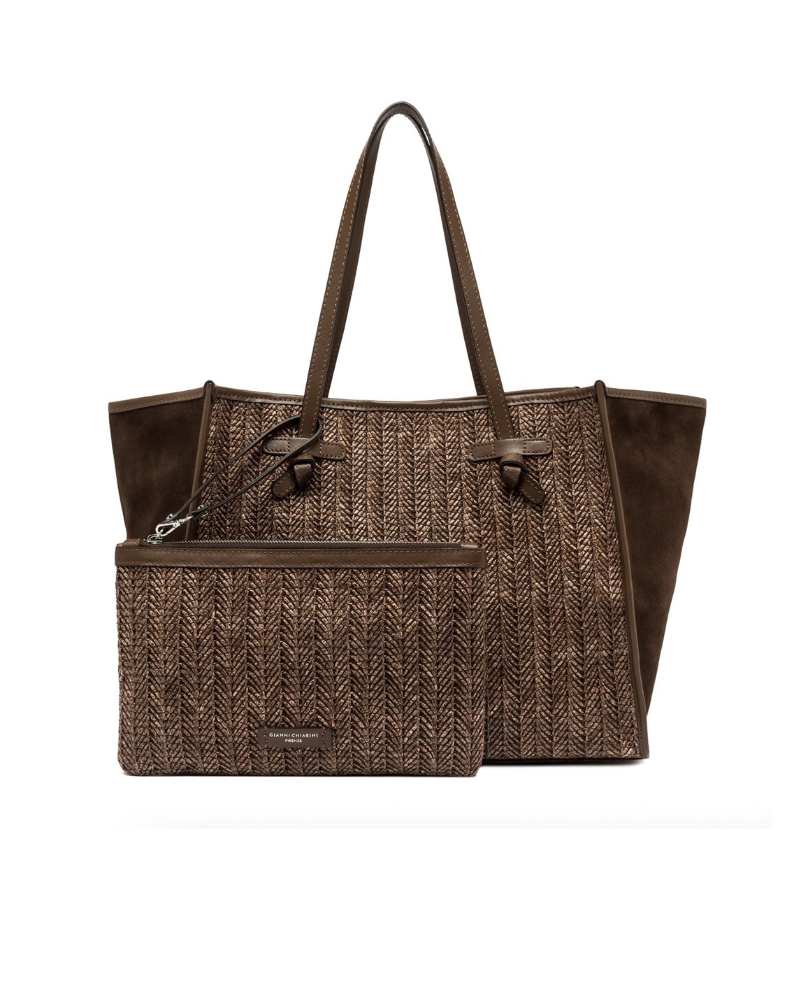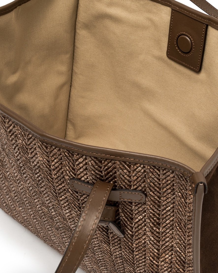 Сумка для покупок Marcella от Gianni Chiarini Firenze изготовлена из соломки «елка», которая придает ей свежий и естественный вид, идеально подходит для летних дней в городе и на отдыхе. Она оснащена кожаными ручками и удобной магнитной застежкой, идеально подходящей для повседневного использования. Внутренняя кожаная застежка придает практичности и универсальности.