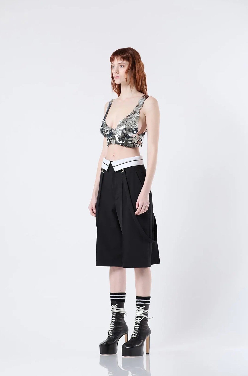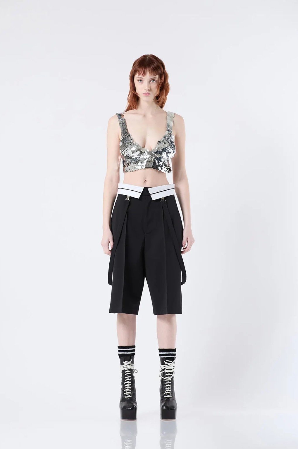 Формальные бермуды с вывернутой талией, бретельками и металлическими аксессуарами