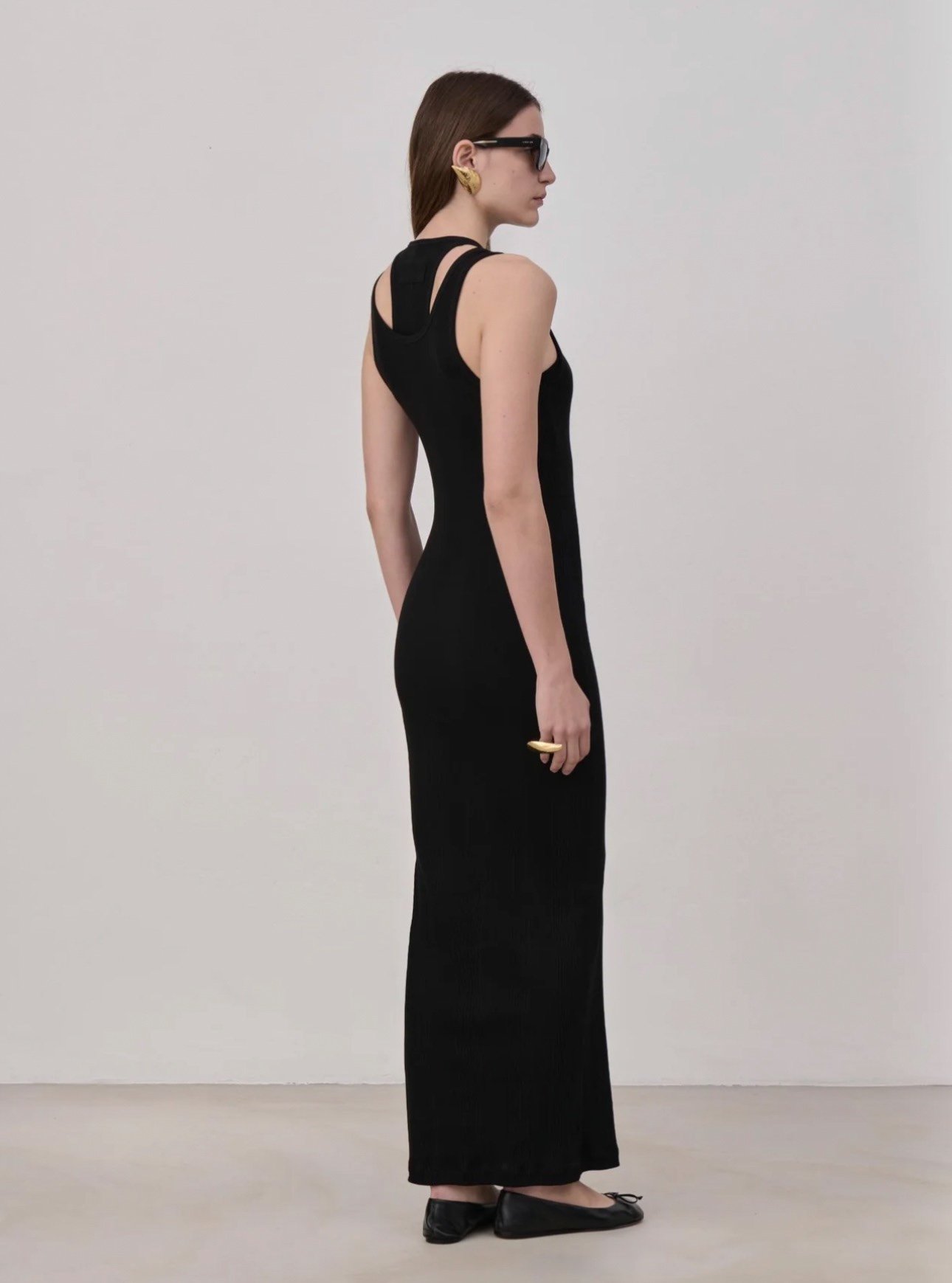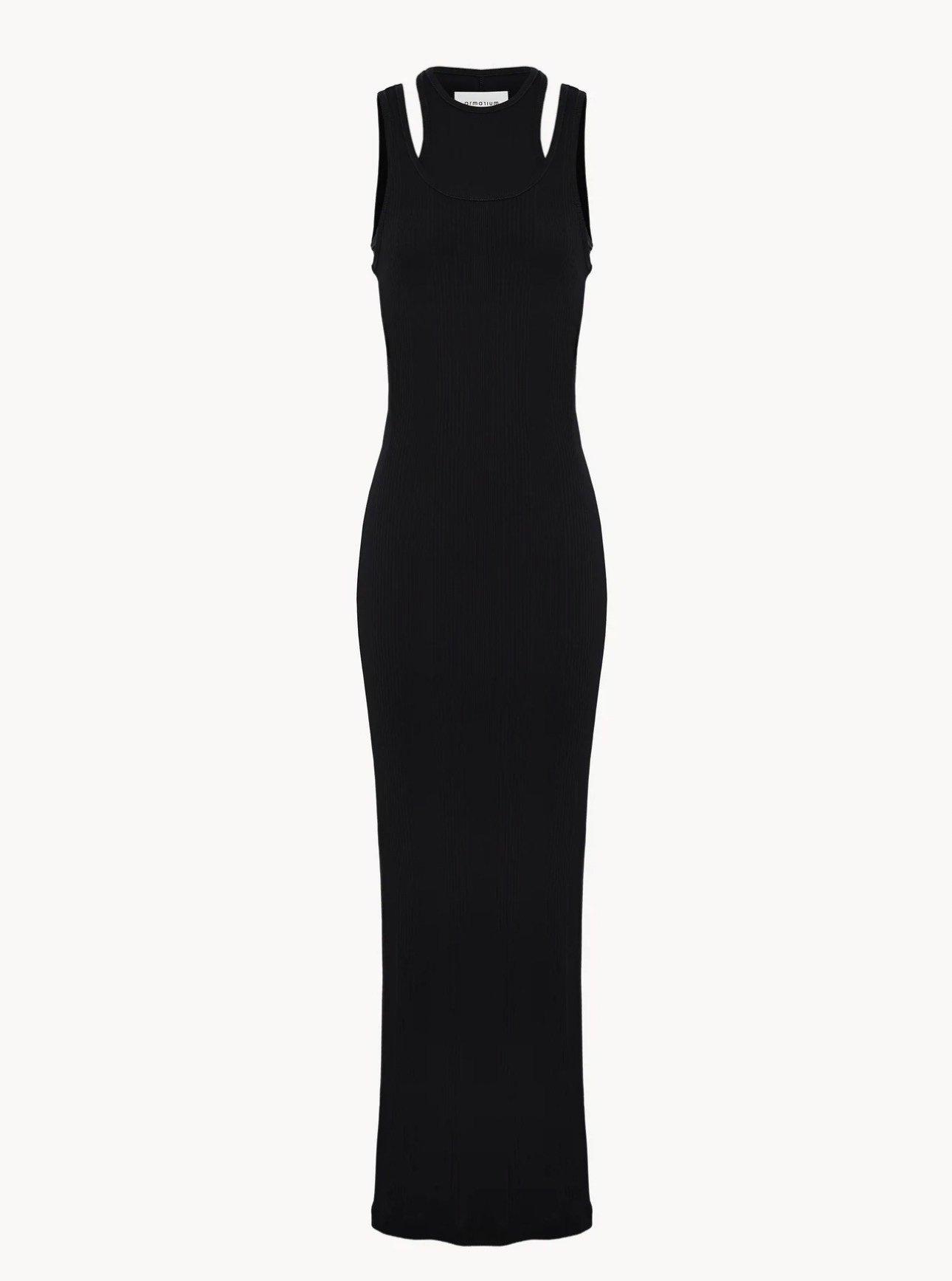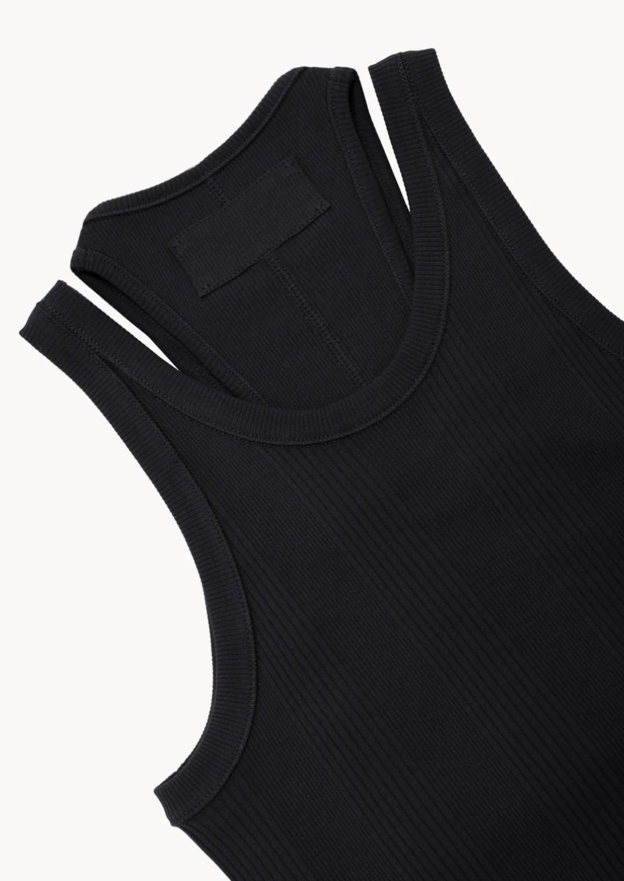 Платье-майка из ребристого хлопкового трикотажа, вдохновленное классической мужской майкой, и разработано как универсальный комплект из двух предметов: один бюстгальтер и одно платье, каждый предмет можно носить отдельно. Без подкладки.