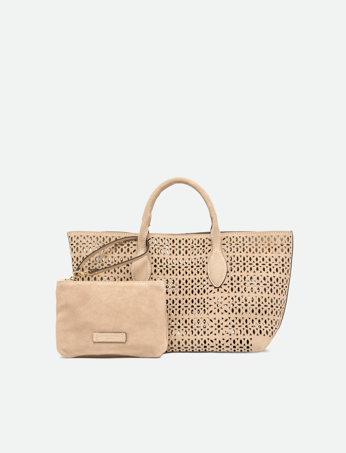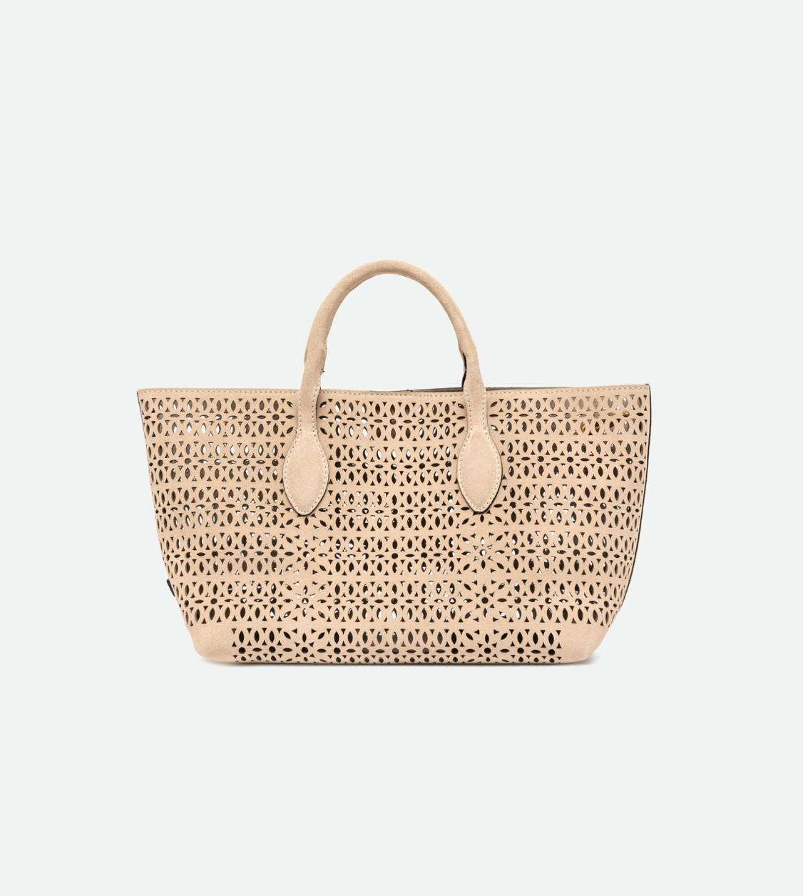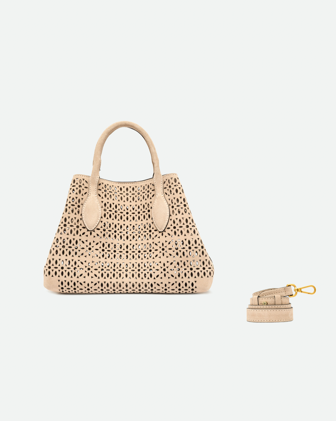 Сумка Mashup Gianni Chiarini Firenze изготовлена из лазерно резаной замши, что создает изысканный перфорированный дизайн, что делает ее уникальной и вневременной. Оснащенная двумя кожаными ручками и магнитной застежкой на пуговицах, она идеально подходит для пополнения повседневного образа. Имеет регулируемый и съемный плечевой ремень для практического и универсального варианта ношения через плечо.