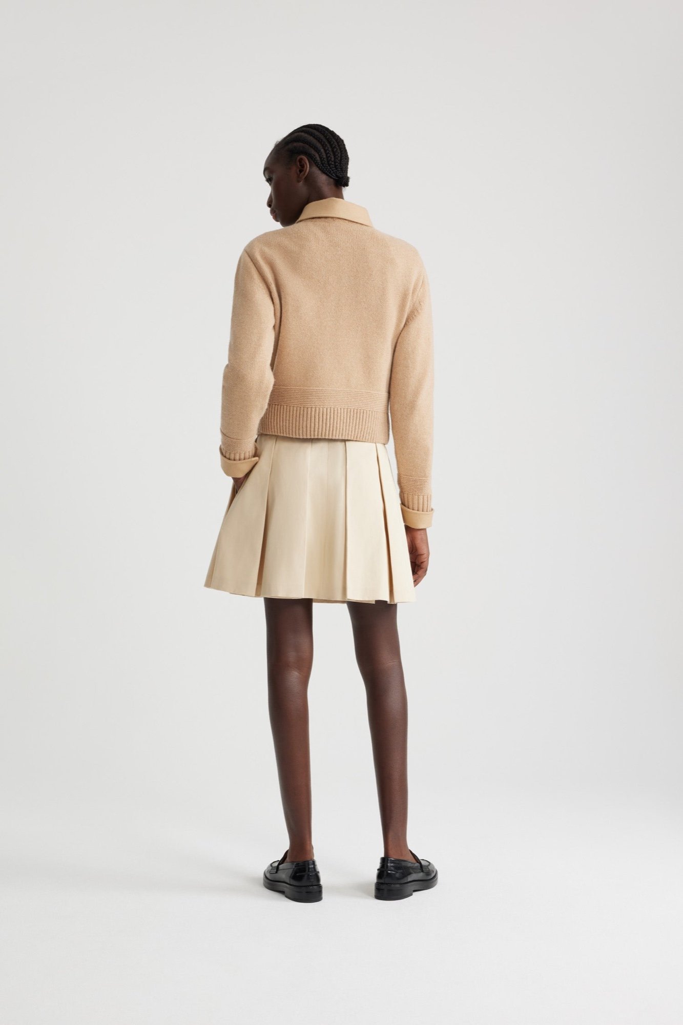 Бежевый экологически чистый джемпер из шерсти и кашемира. Круглая горловина. Воротник, манжеты и низ в рубчик. Intarsia Patou и JP спереди.