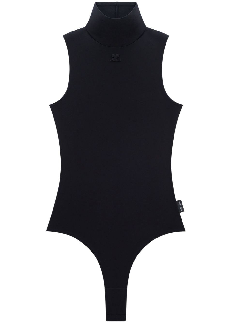 Опис: Боді з джерсі з високим коміром. Чорна, технологічна тканина, тиснений логотип спереду, маленька підвіска з логотипом, високий комір і без рукавів.