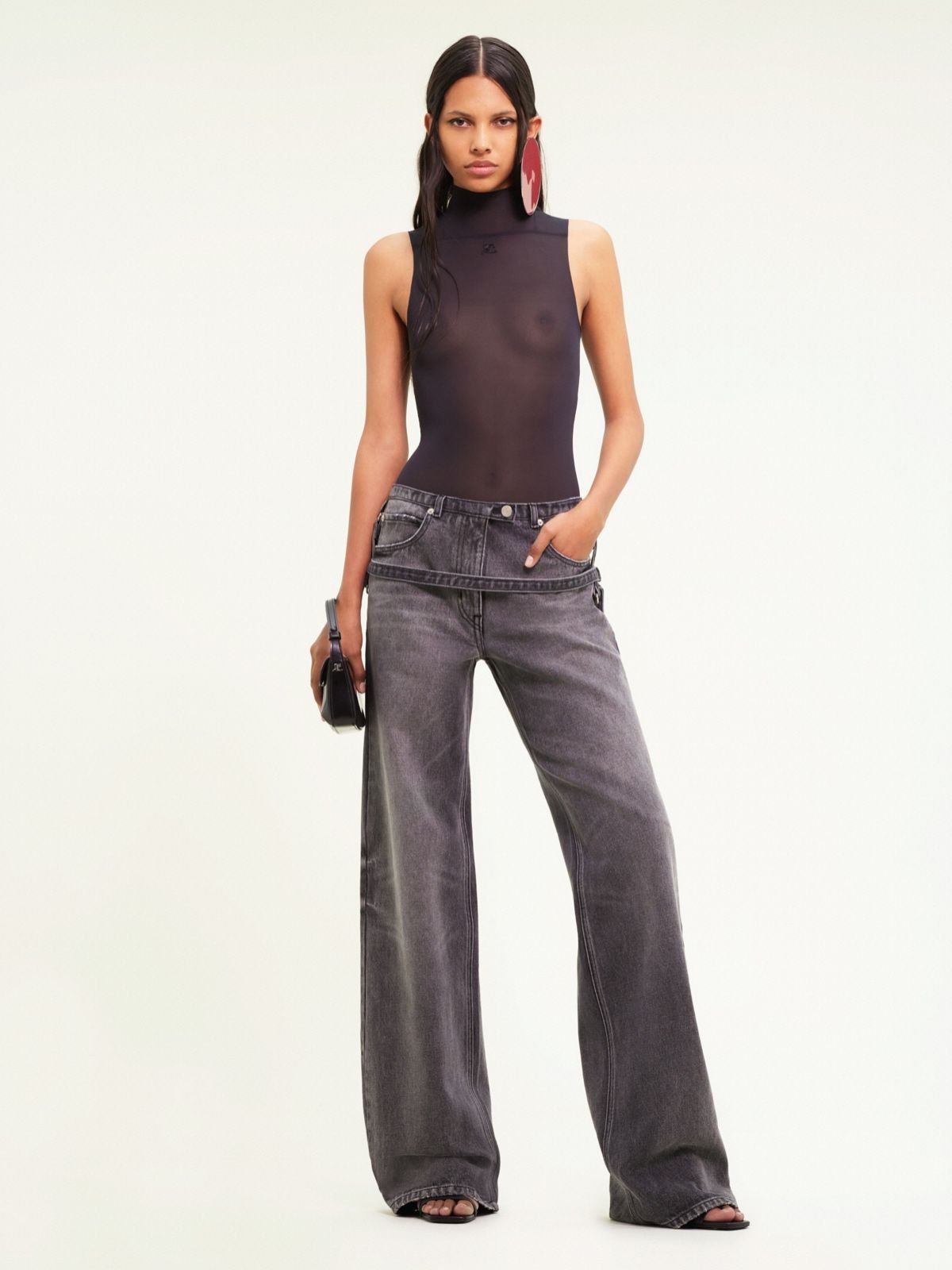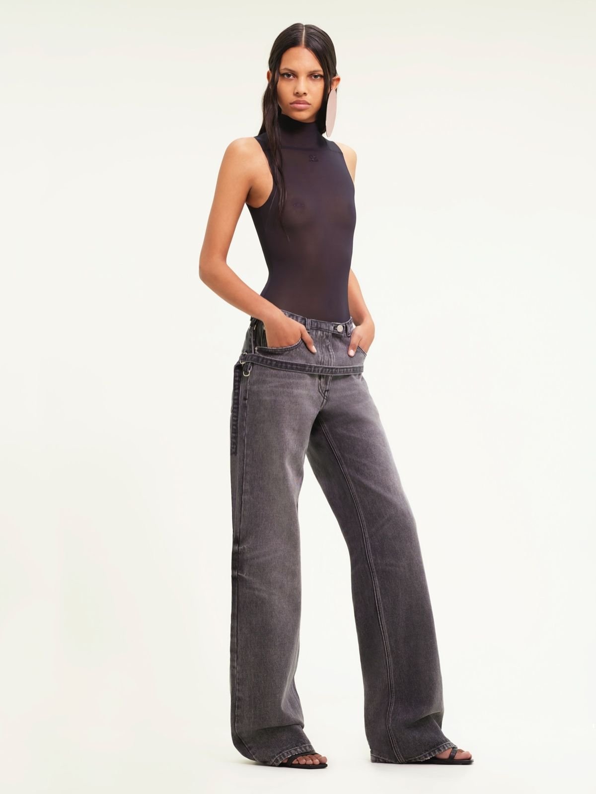 Боді без рукавів з трикотажу з квадратним вирізом горловини та фальшивим коміром