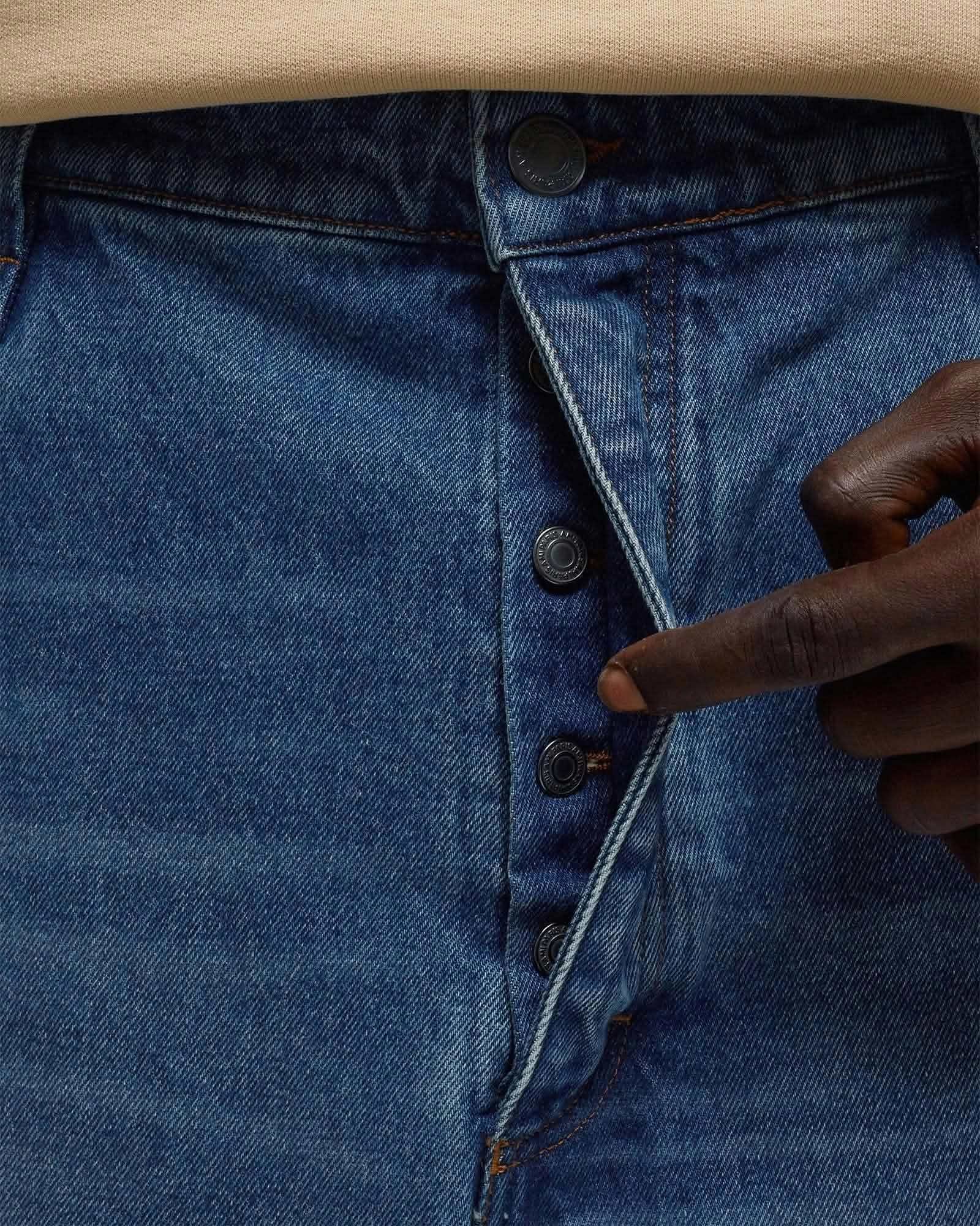 Опис: Джинси Alex Fit від AMI Paris мають невимушену широку посадку та злегка розмитий вигляд. Джинси застібаються на ґудзики та оздоблені шкіряною нашивкою ззаду.