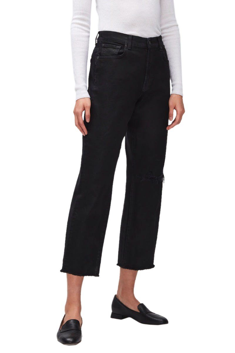 Опис: Сучасні прямі джинси від 7 for all Mankind з високою посадкою декоровані штучними потертостями та необробленим краєм штанин. Модель виконана з високоякісної натуральної бавовни з додаванням еластичних волокон. Широкий крій. Застібка-блискавка та гудзик. Шльовки для ременя. Бічні та задні нашивні кишені. Джинси від 7 for all Mankind з високою талією ідеально комбінуються зі шкіряною курткою та лоферами.