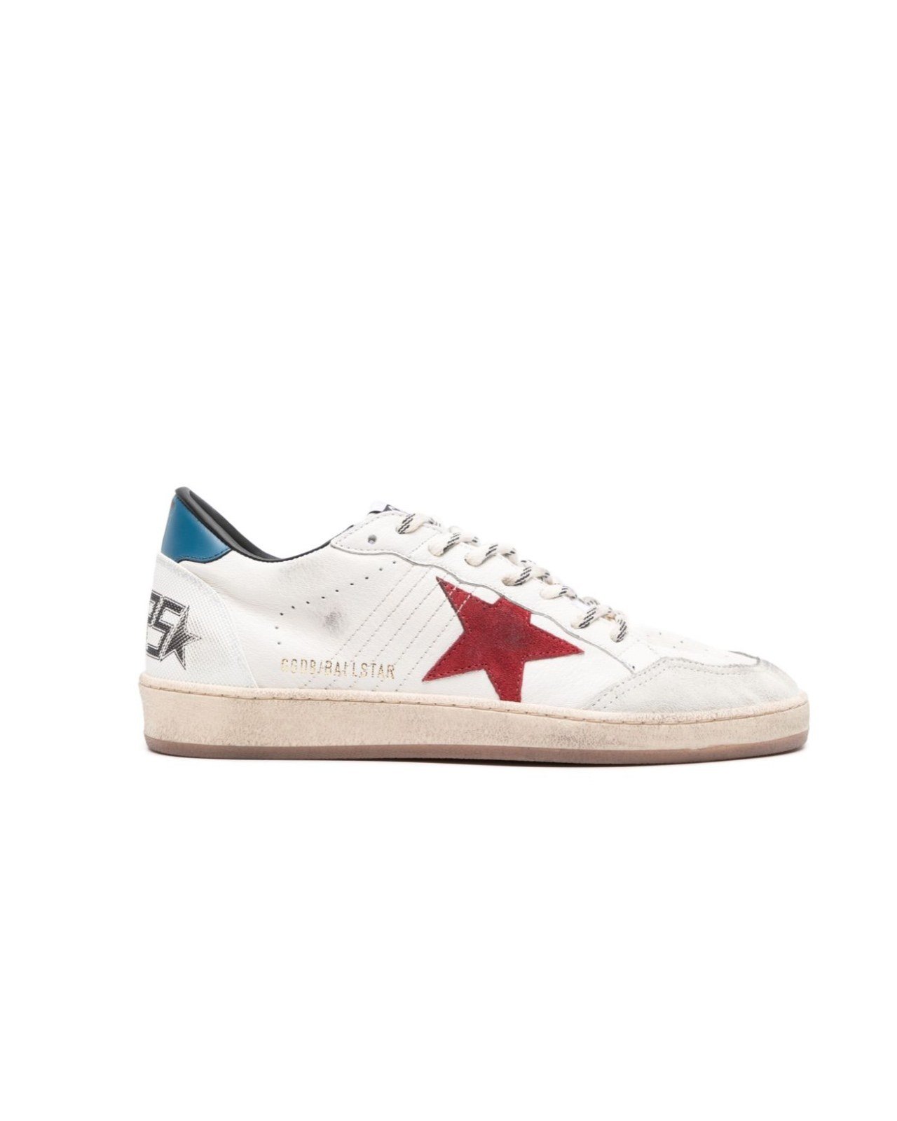 Чоловічі кеди Golden Goose виготовлені з телячої шкіри та потертою обробкою, дизайн із замшевими панелями, фірмова нашивка у вигляді зірки з боків, принт логотипу збоку, перфорована нашивка з логотипом на язику.