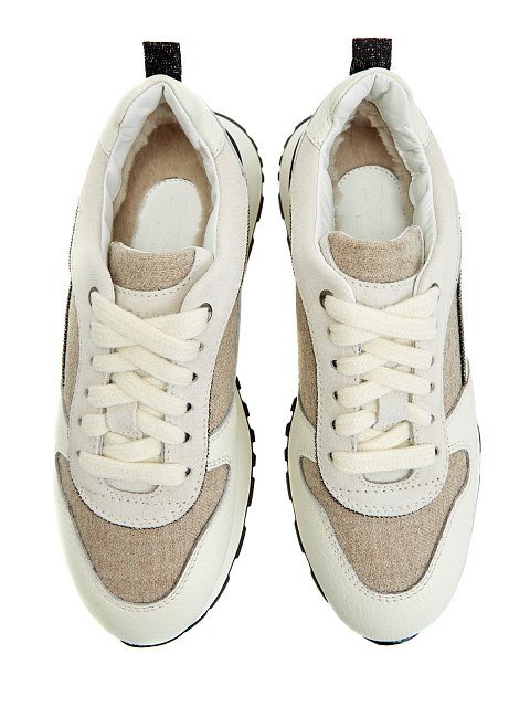Опис: Жіночі кросівки Doucal's. Модель молочного кольору. Бежеві вовняні вставки. Шнурівка. Логотип. Хутро всередині.