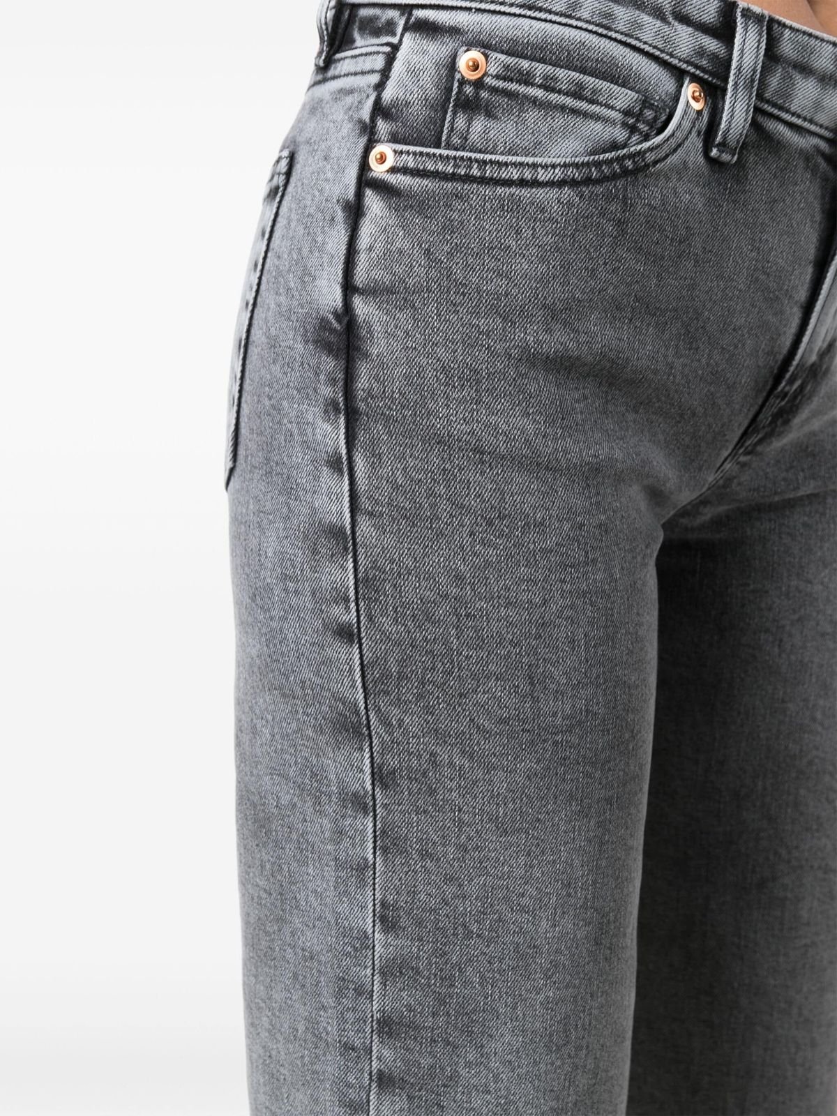 Ефект потертості, застібка на блискавці та гудзику спереду, петлі для ременя, класична модель п'ятикирманна, вільний крій і вкорочена довжина.