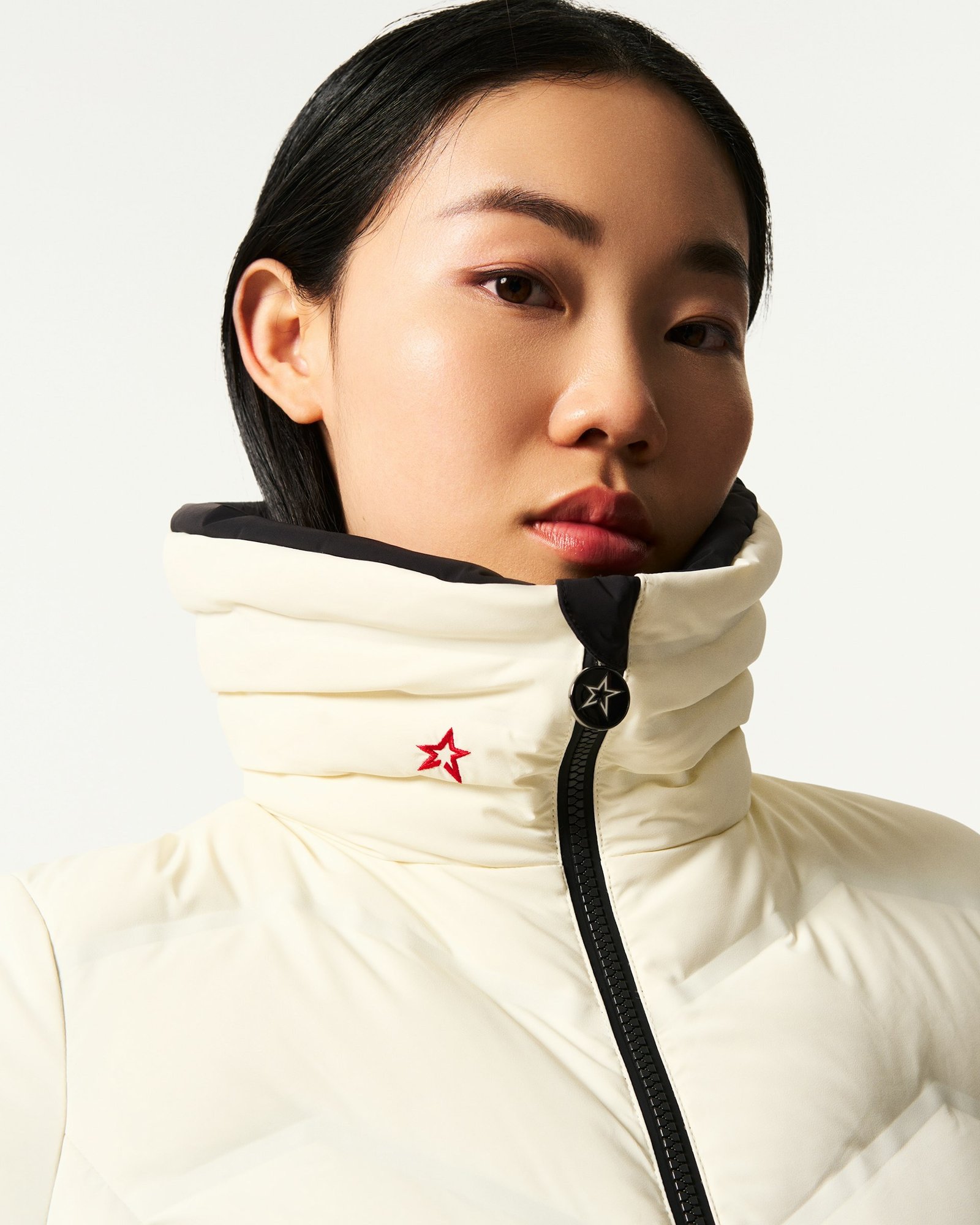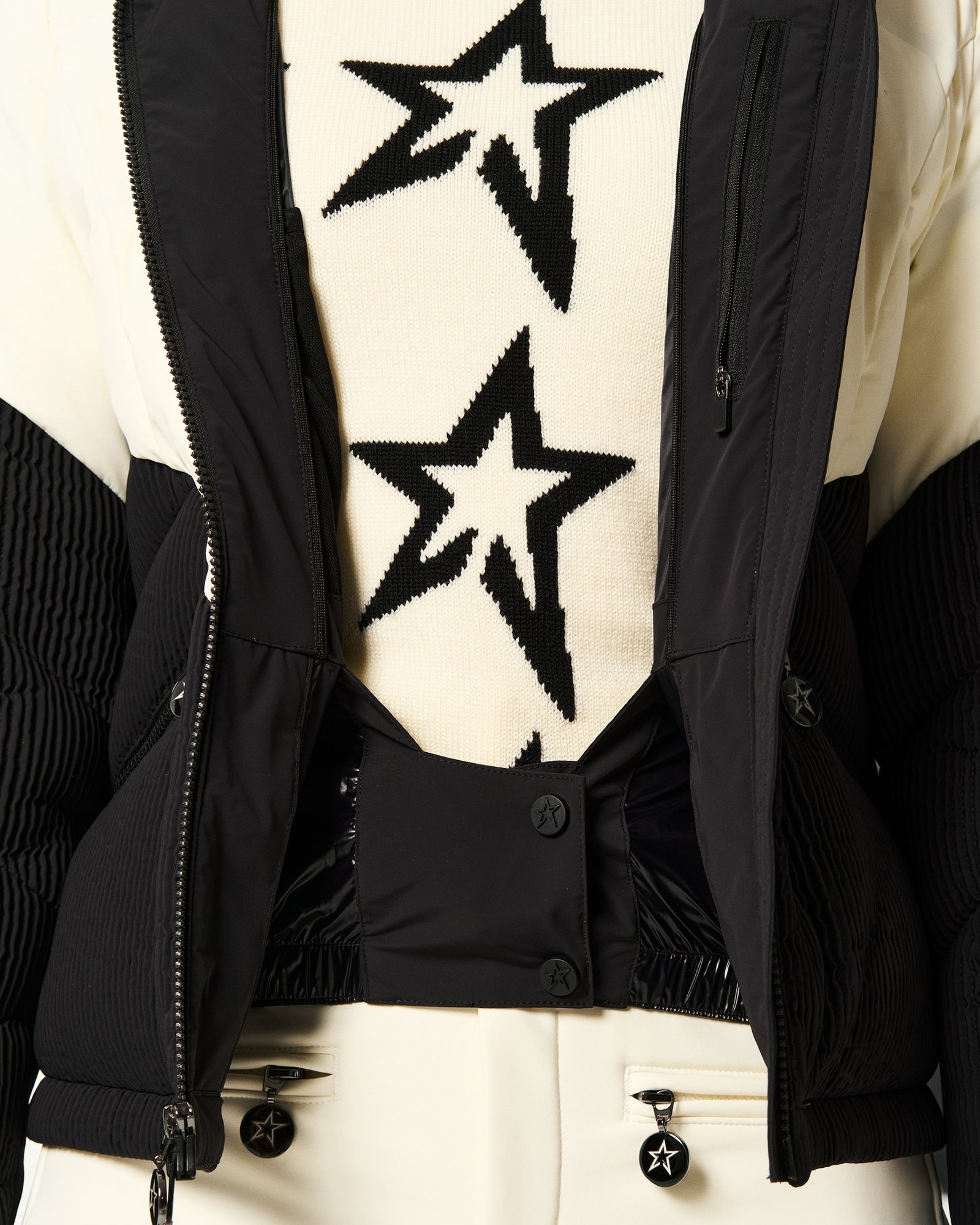 Чисті лінії, сміливий контраст — це альпійський мінімалізм у найкращому вигляді. Пухова куртка Ski Duvet щільно прилягає до стегна, виготовлена в яскравій монохромній палітрі, яка привносить сучасну елегантність у гори. Повністю водонепроникна та утеплена пухом з наповненням 700, вона розроблена для будь-яких умов, зберігаючи при цьому елегантний силует. Високий комір, регульовані манжети та снігова спідниця забезпечують захист від негоди, а технологія RECCO® гарантує, що ви будете готові до схилів. Оздоблена тонким зигзагоподібним стеганням, ця річ незамінна для холодної погоди, яка виходить за рамки модних тенденцій.